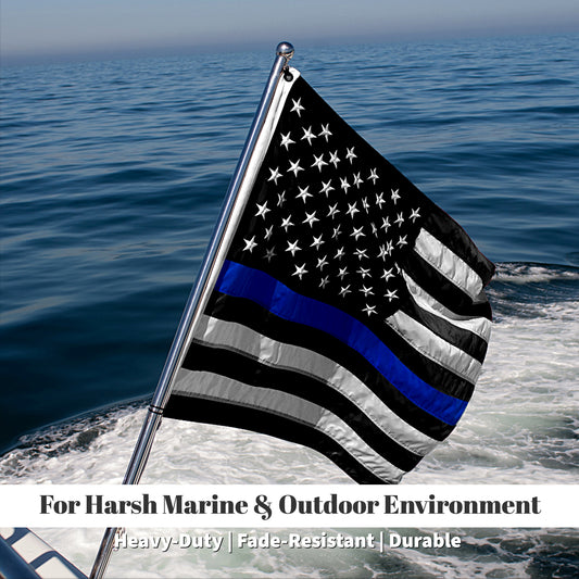 Police Boat Flag 12" x 18" Inch Blue Thin Line American Cabin Waterproof Embroidered Marine & Golf Cart Flags