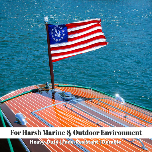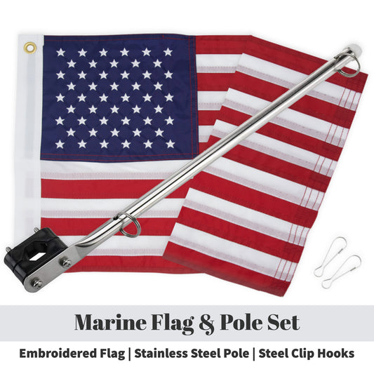 American USA Boat Flag With Pole Kit 12" x 18" Cabin Waterproof Embroidered Marine & Golf Cart Flags