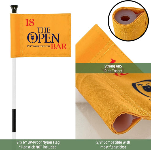 Golf Flag 8x6 Inch – 420D Nylon Double-Sided Mini Pin Flag with Tube Inset, Practice Putting Green Flags for Yard (The Open-Inspired)