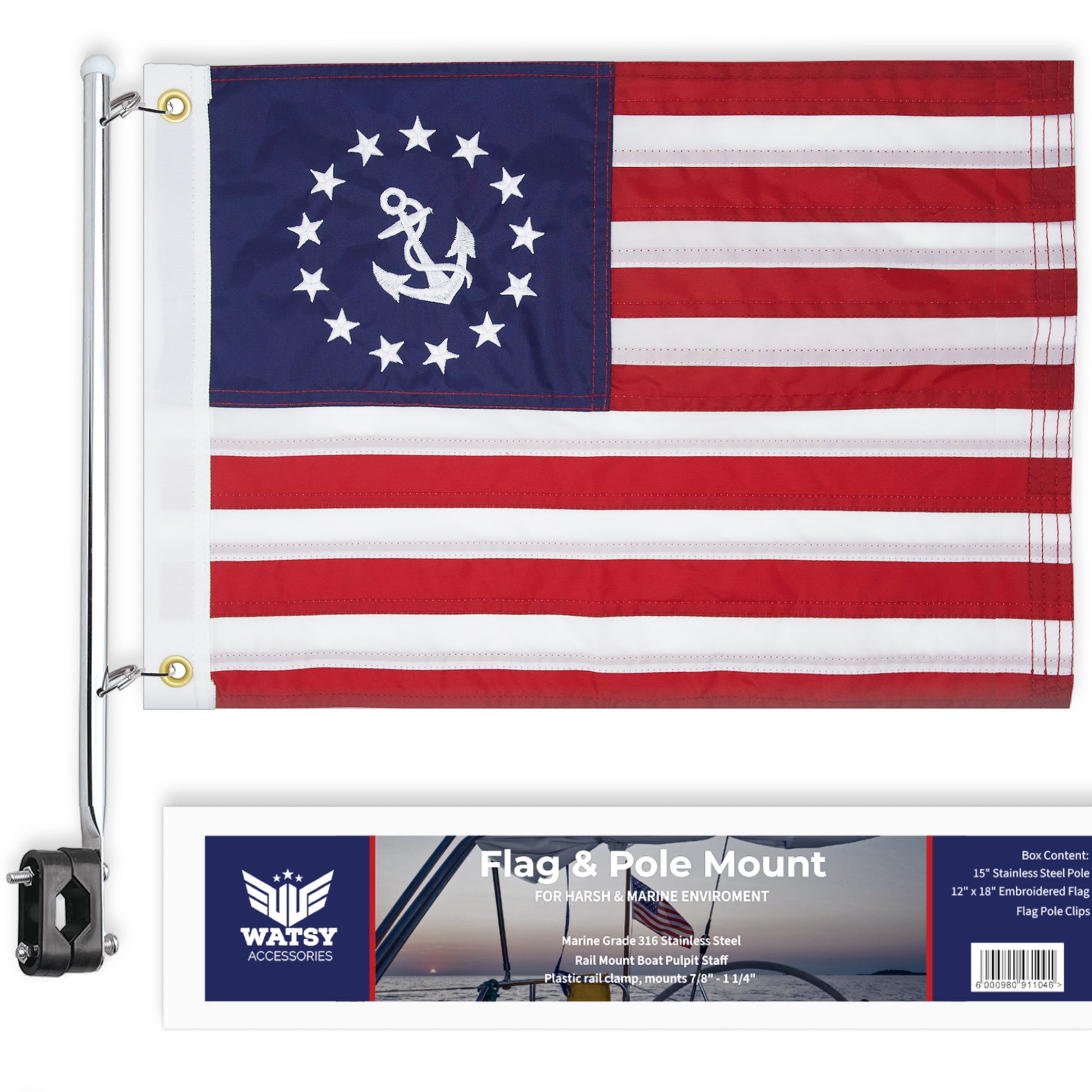 American US Yacht Ensign Boat Flag With Pole Kit 12" x 18" Nautical Cabin Waterproof Embroidered Marine & Golf Cart Flags