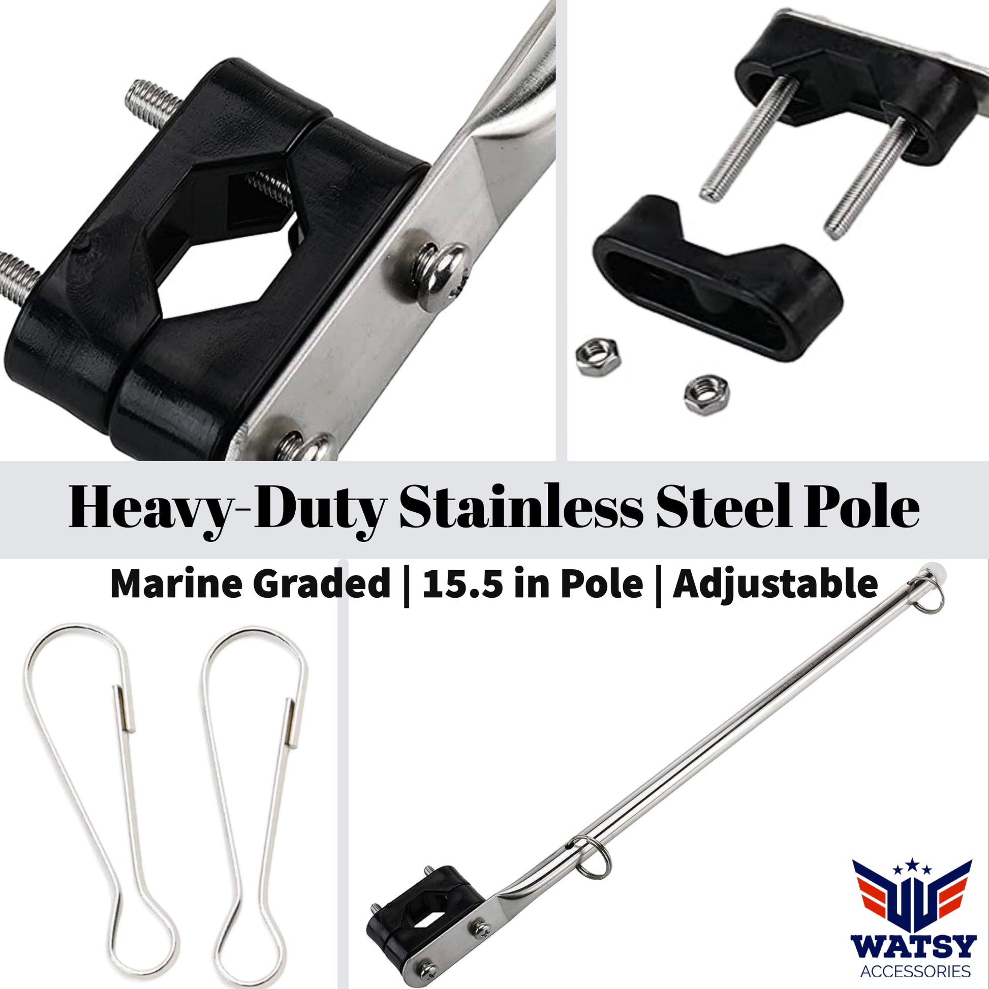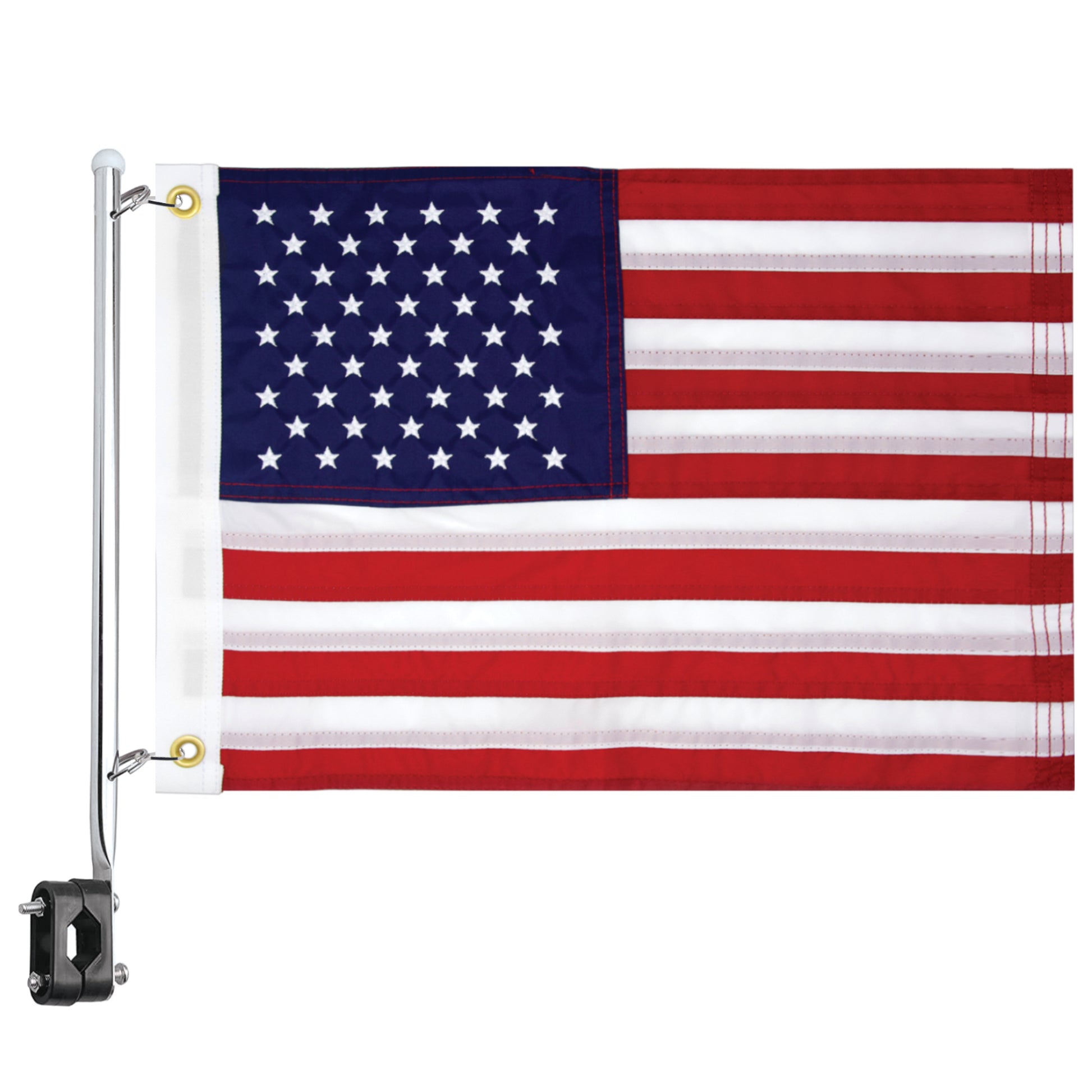 - BOAT FLAG KIT - Our boat flag kit includes: Embroidered USA Flag, stainless steel pole & steel clip hooks.