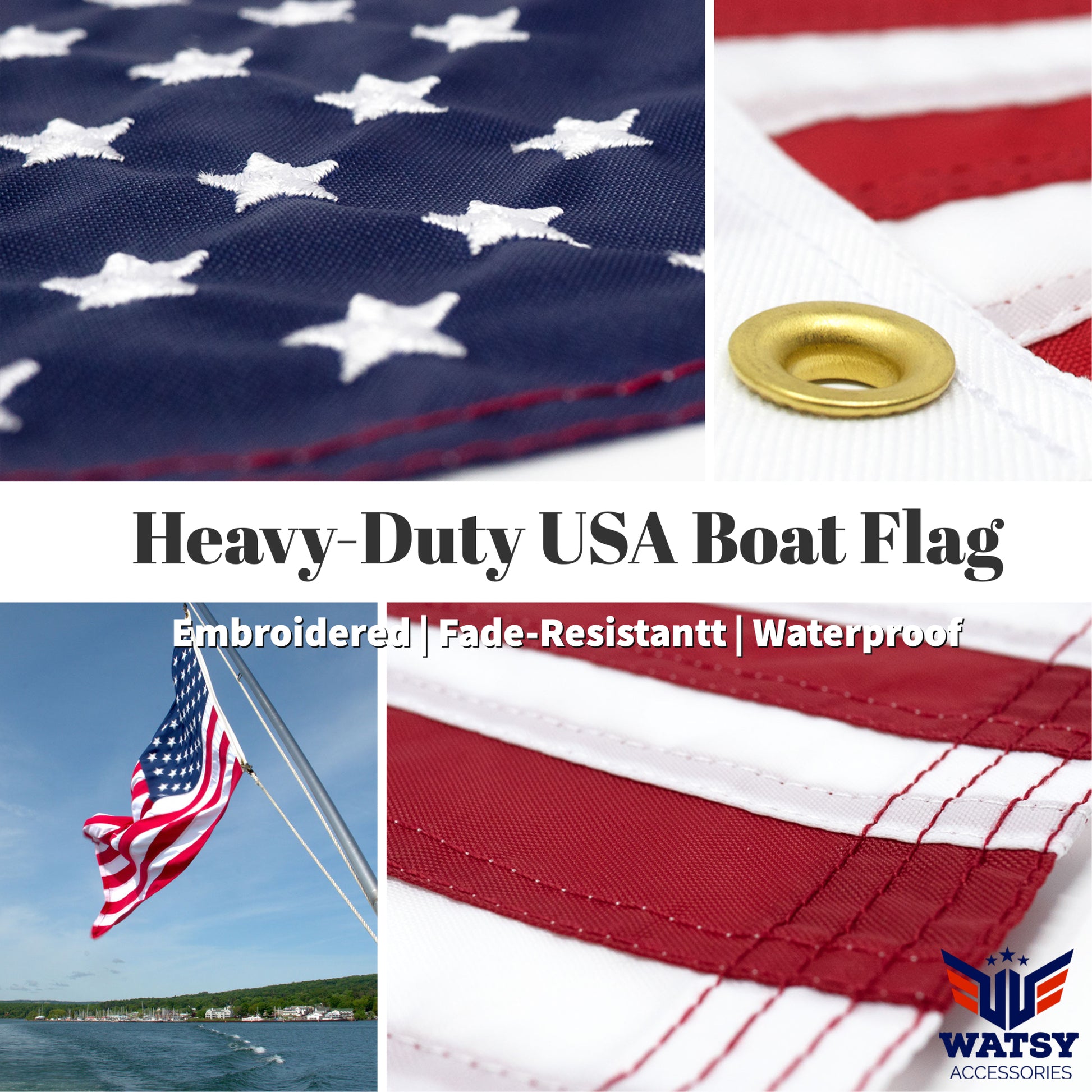 American USA Boat Flag With Pole Kit 12" x 18" Cabin Waterproof Embroidered Marine & Golf Cart Flags